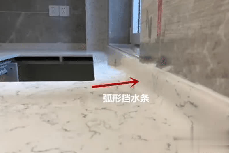 此外,L型挡水条也不可取,因为其使用的玻璃胶容易发霉变黑,一旦沾染污渍还难以清理。相比之下,一体式圆弧挡水条能让台面更加简洁实用,且无卫生死角。